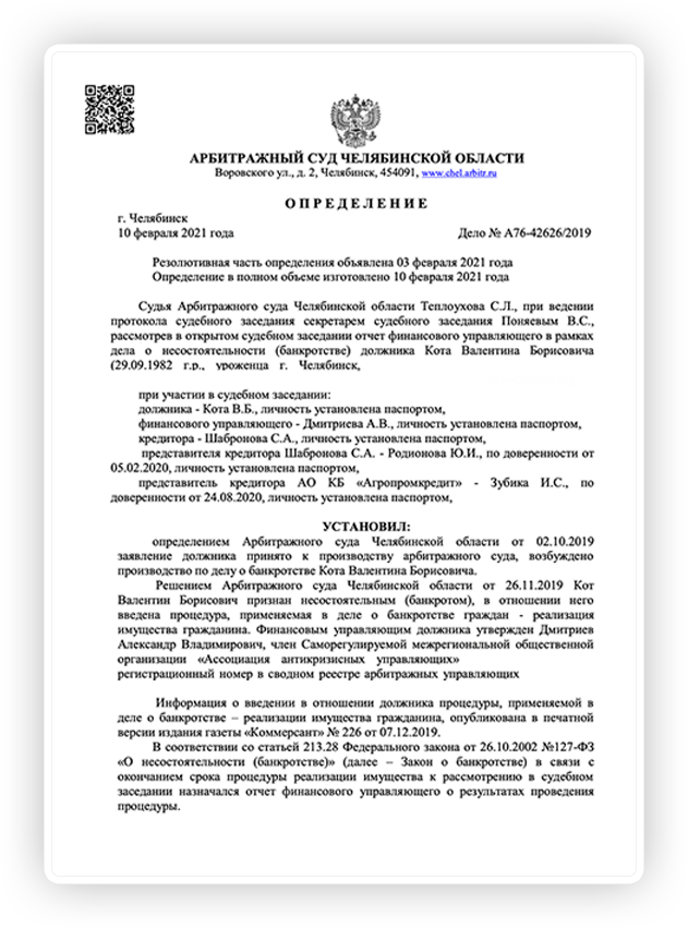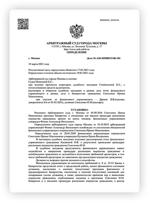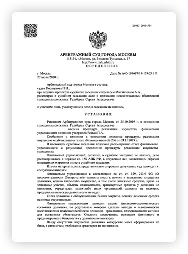 Законно избавим вас от долговых обязательств через процедуру банкротства физических лиц или вернем все деньги в соответствии с договором.